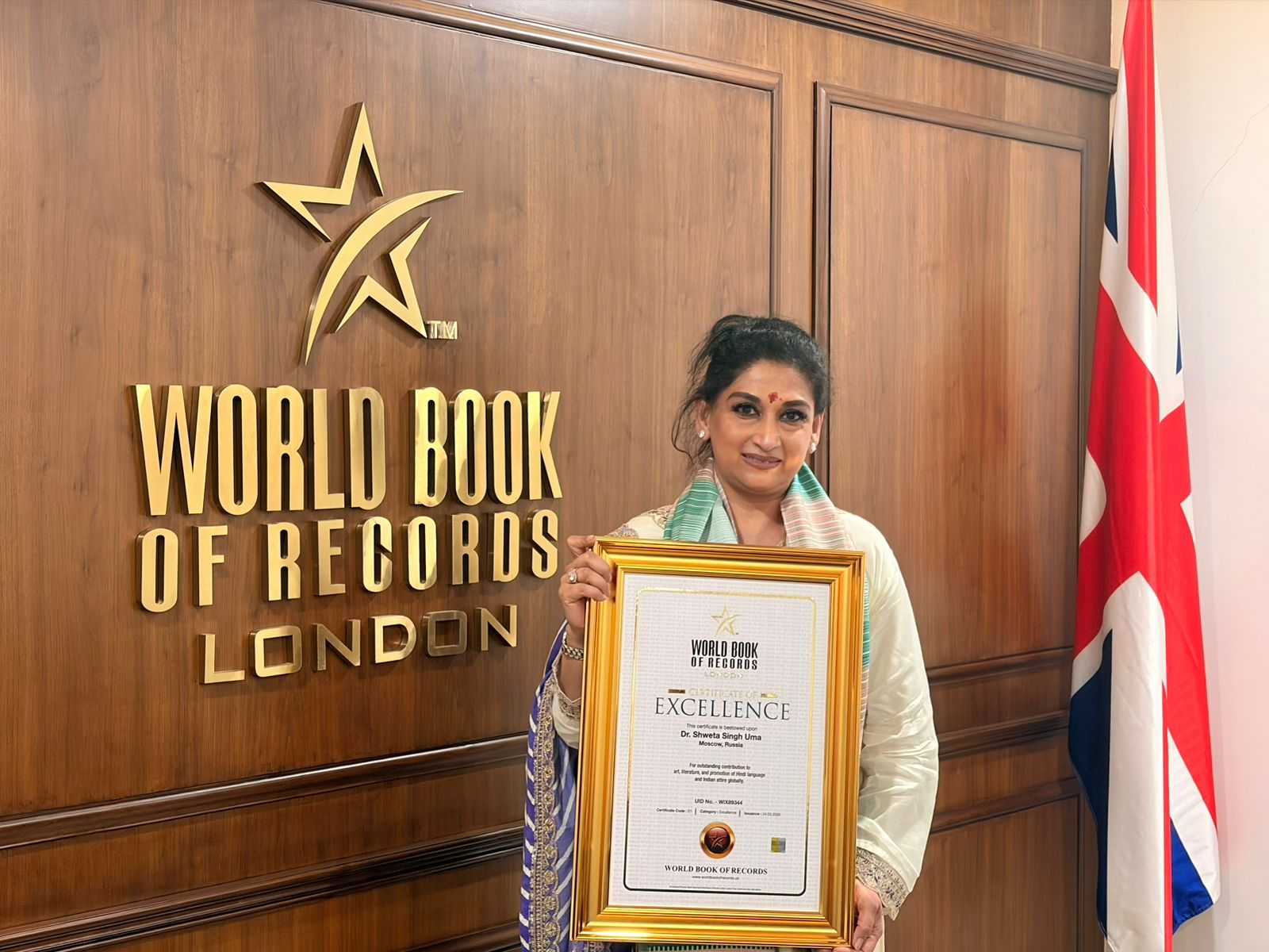 Dr. Shweta Singh Uma Honoured by World Book of Records for Global Promotion of Hindi and A...